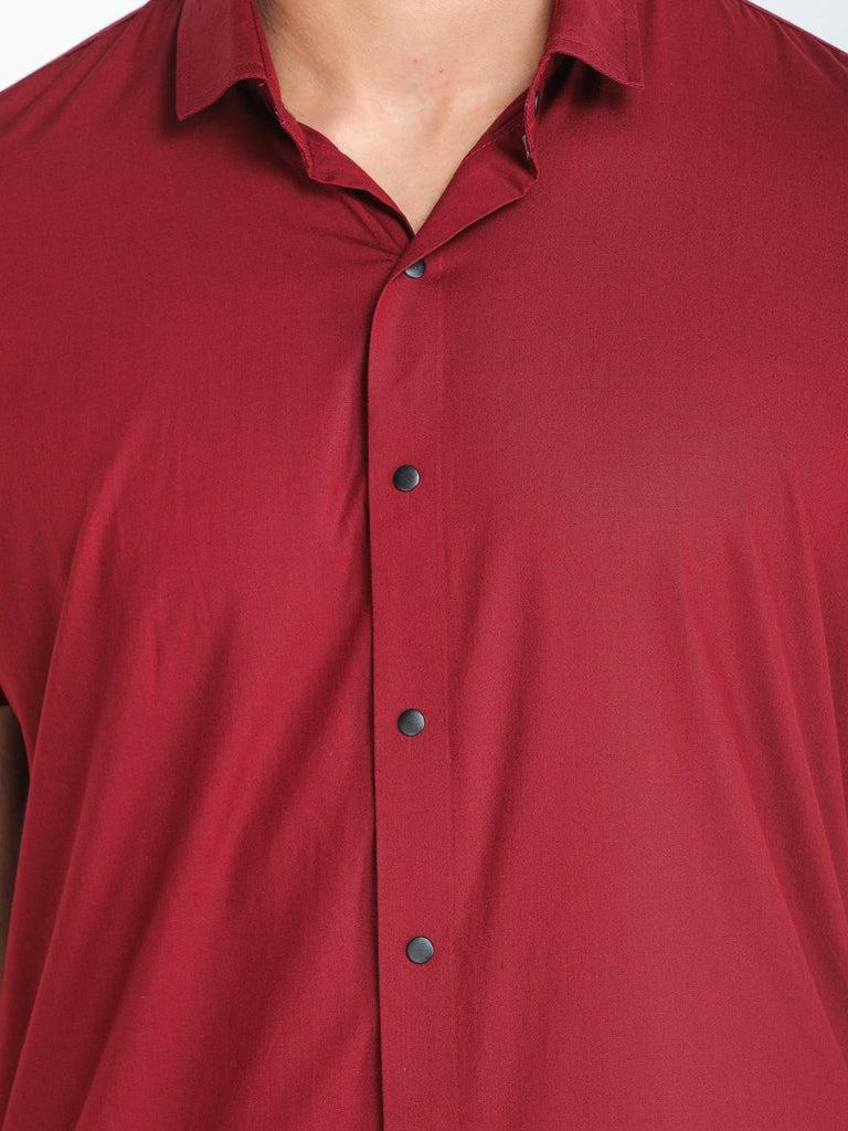 Item: Slim Fit Casual Shirt Style Id: Ch-Cs7316-Maroon Fabric: Paper Cotton Sleeve: Short Sleeves Pattern: Solid Hemline: Curved Closure: Button Button Type: Tich Button