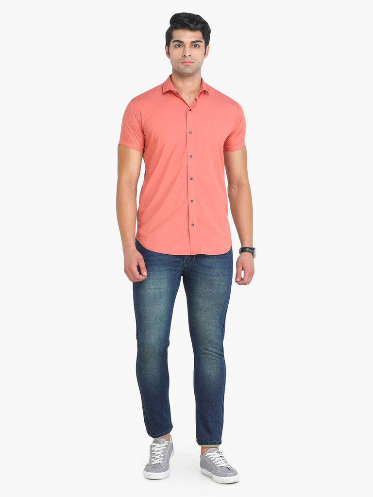Item: Slim Fit Casual Shirt Style Id: Ch-Cs7316-Peach Fabric: Paper Cotton Sleeve: Short Sleeves Pattern: Solid Hemline: Curved Closure: Button Button Type: Tich Button