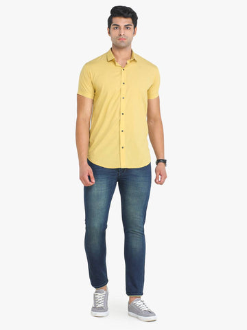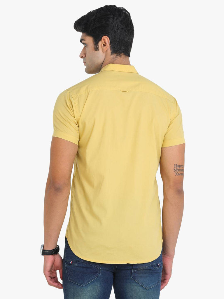 Item: Slim Fit Casual Shirt Style Id: Ch-Cs7316-Yellow Fabric: Paper Cotton Sleeve: Short Sleeves Pattern: Solid Hemline: Curved Closure: Button Button Type: Tich Button