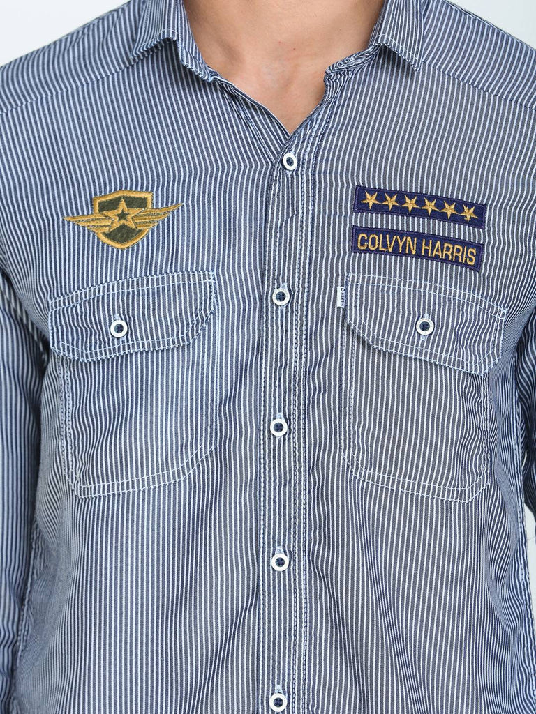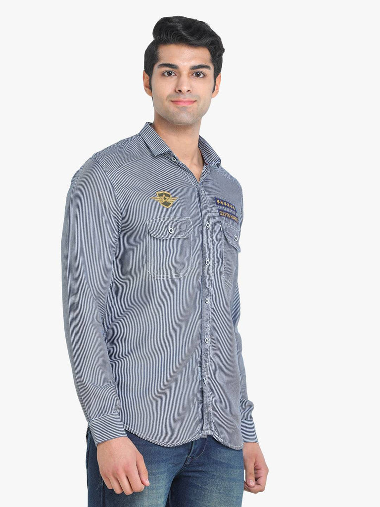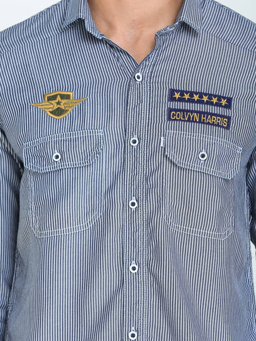 Style Id: Ch-Cs836-Darkindigoblue Fabric: Cotton Blend Sleeve: Full Sleeves Pocket: 2 Flap Pockets Pattern: Verticle Stripe Hemline: Curved Closure: Button