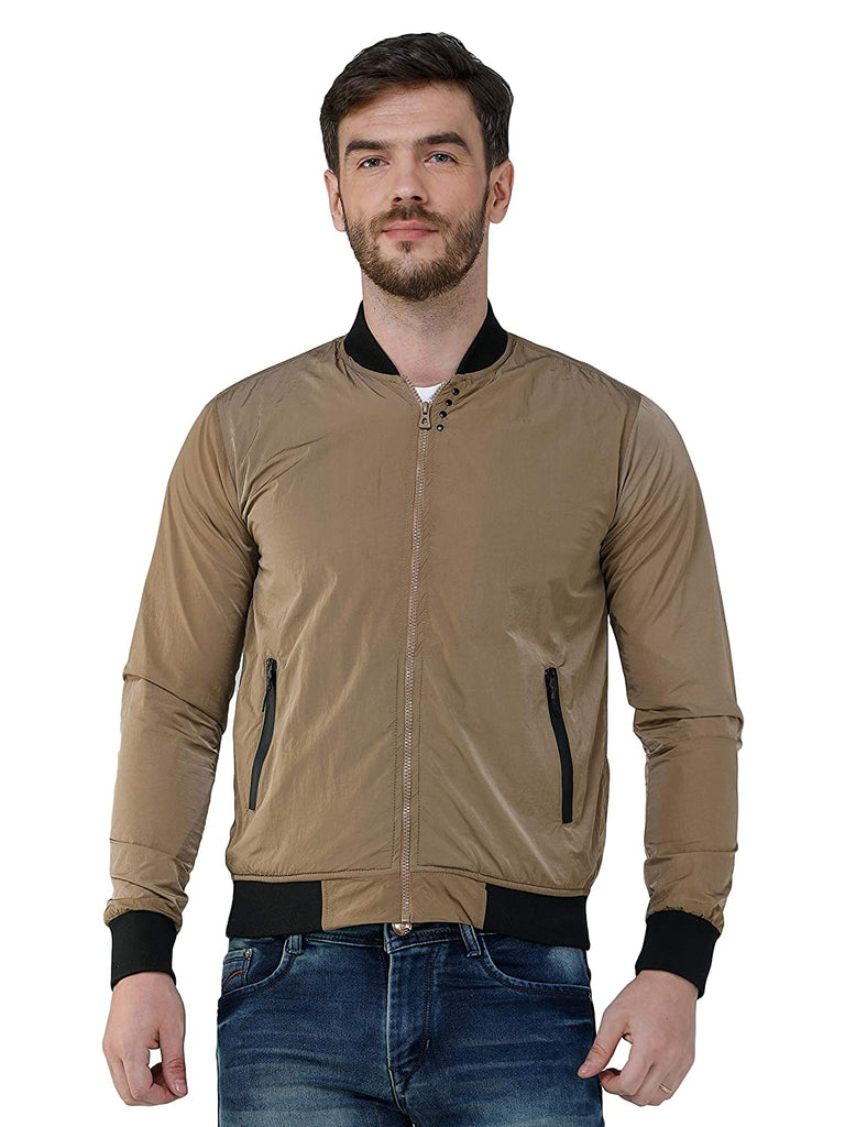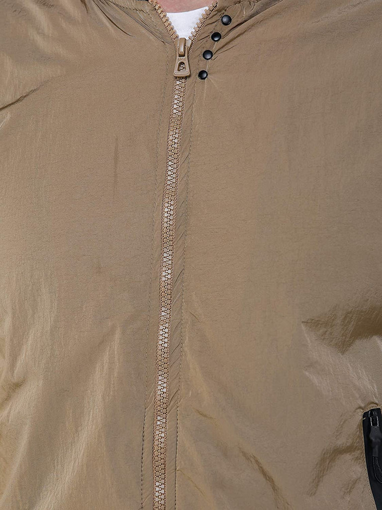 Nylon Crush Jacket With Cross Pocket With Nylon Rib At Neck, Sleeves And Bottom