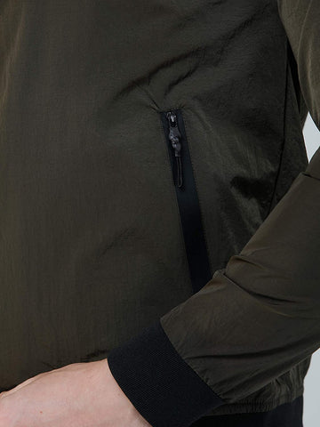 Nylon Crush Jacket With Cross Pocket With Nylon Rib At Neck, Sleeves And Bottom