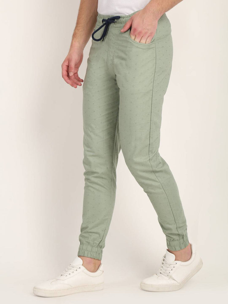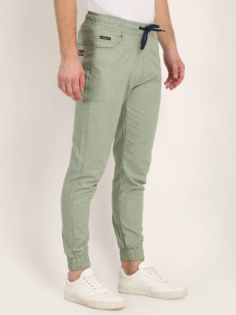 Men Dobby Joggers have elasticated & drawstring waistband with belt loops, 4 pockets (2 side pockets 1 mini & 1 back pockets). It is made of pure cotton fabric and has texture fabric pattern.