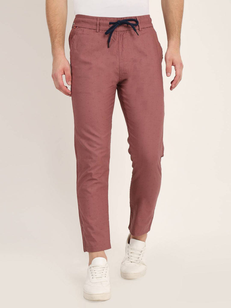 Men Dobby Lower Pant have elasticated & drawstring waistband with belt loops, 2 side & 1 back pockets. It is made of pure cotton fabric and has texture pattern.